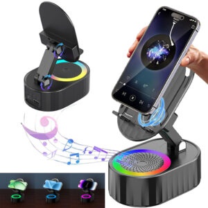- [Cadeau gadget cool unique] : le haut-parleur Bluetooth avec support de téléphone portable est parfait pour les hommes et les femmes, en particulier les personnes âgées malentendantes. Il est petit et pratique, le support de téléphone se replie à plat contre le haut du haut-parleur, est parfait pour la chambre, le bureau, le camping, la randonnée, le yoga, la cuisine et plus encore. Ce support de téléphone portable a une compatibilité universelle et peut supporter de manière stable la plupart des smartphones, tablettes et liseuses électroniques de 4 à 13″.