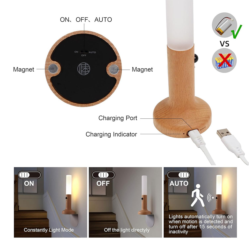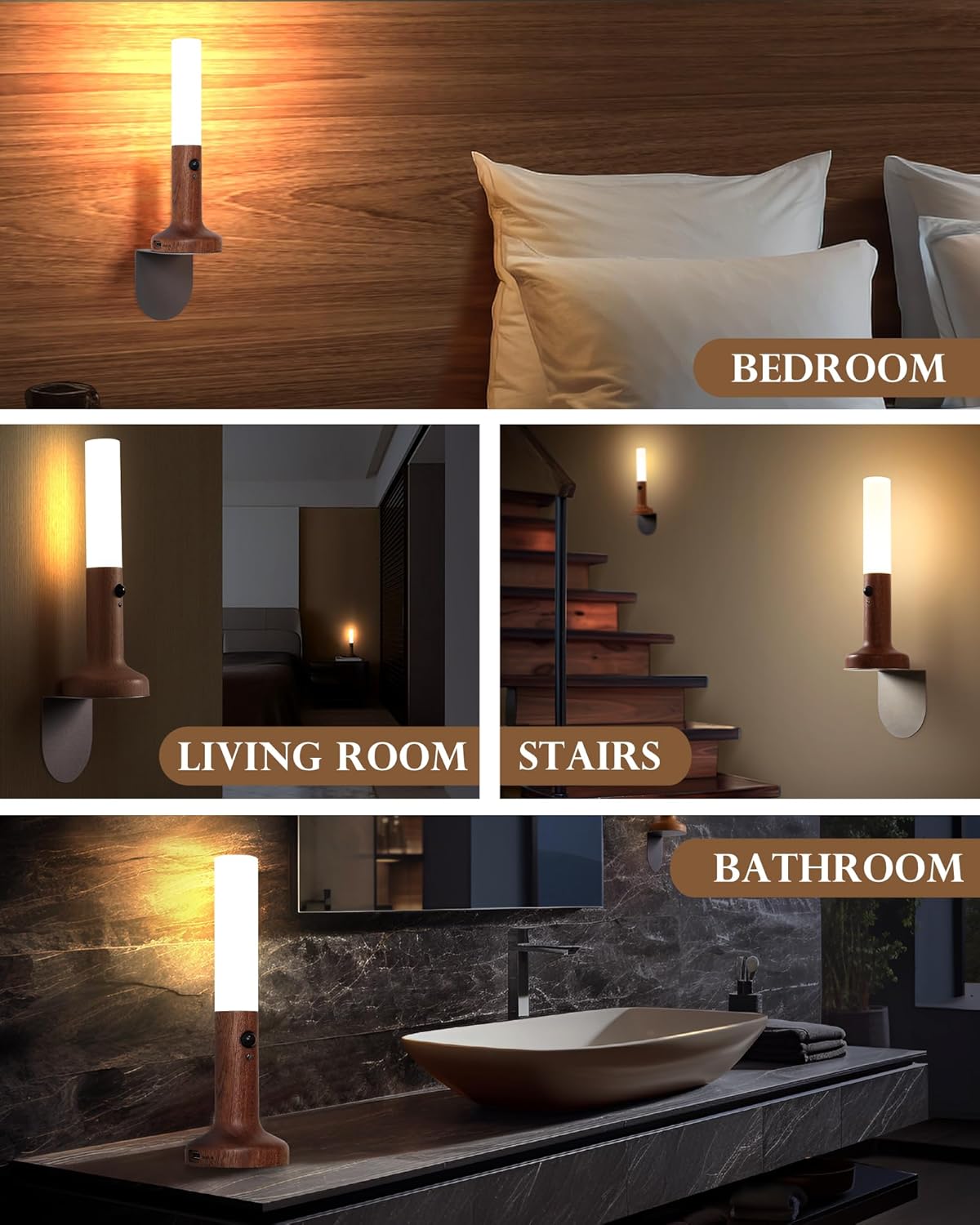 Applique murale rechargeable en bois avec détecteur de mouvement effet glow – مصباح جداري محمول
