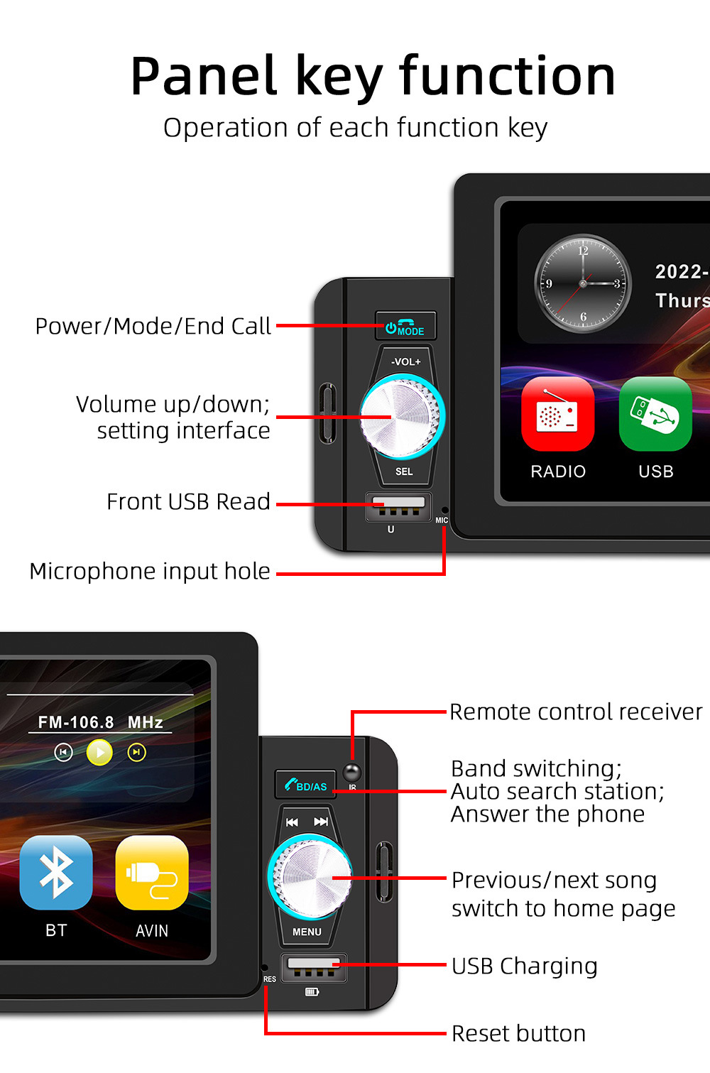 - Grand écran HD : le lecteur MP5 de voiture dispose d’un grand écran haute définition 4.3inch , support la caméra de recul ( camera non inclus ).