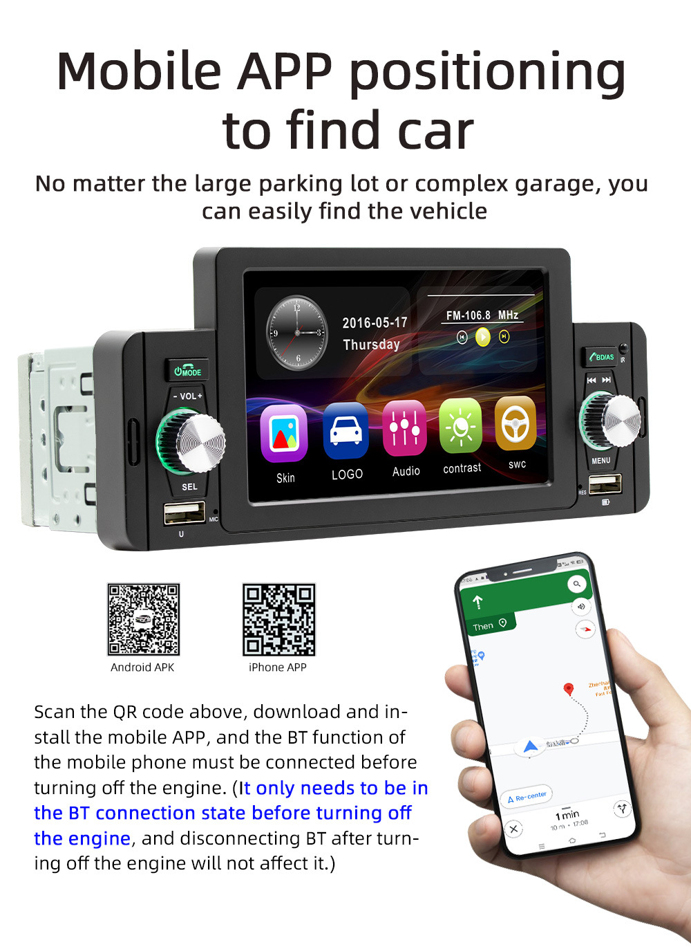 - Fonction BT : prend en charge la version BT 5.1, profitez de la musique BT et des appels mains libres, qui a une transmission stable, un effet d’appel clair et un faible retard.