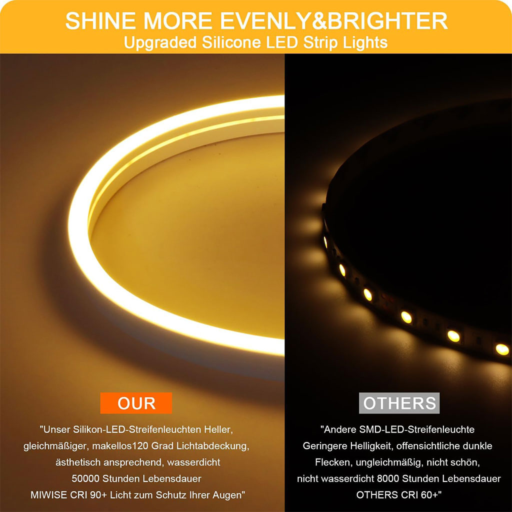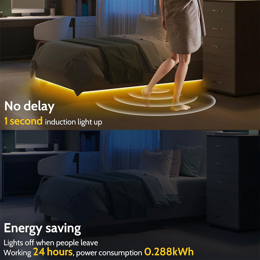 - Ultra-lumineuse : 60 LED SMD 2835 de qualité supérieure diffusent une lumière de 556 lumens, éclairant toute votre pièce et vous permettant de voir clairement la nuit en cas de besoin. Idéale pour la chambre, le salon, la salle de bain, les escaliers, le couloir, la cuisine, sous les meubles, dans les placards et le garde-manger.