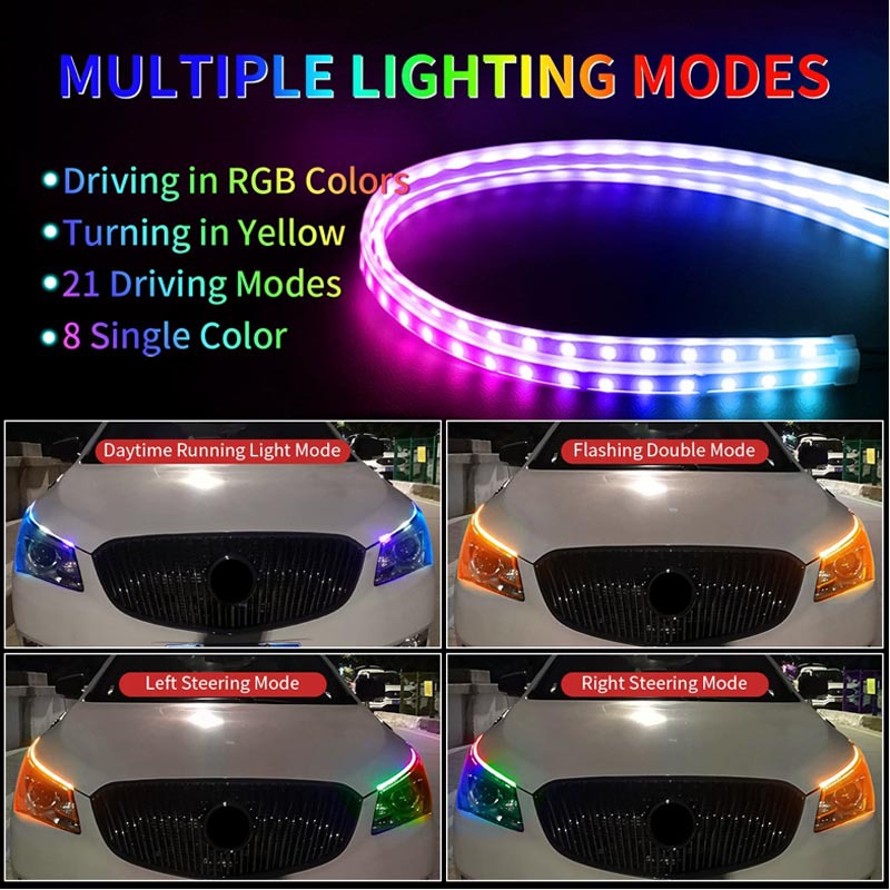Bande LED de phare de voiture 2 pcs lumières RVB