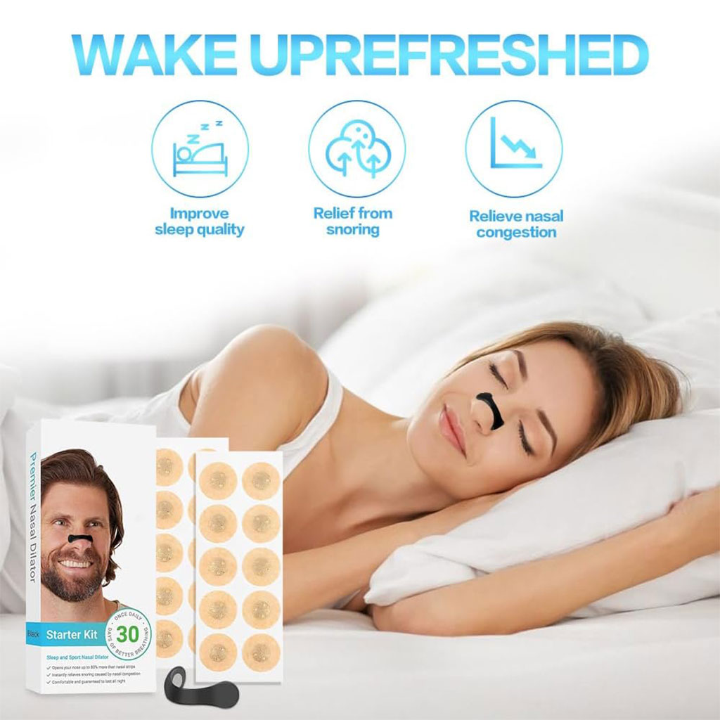 - Bandes flexibles mais résistantes qui adhèrent solidement pour élargir les narines.