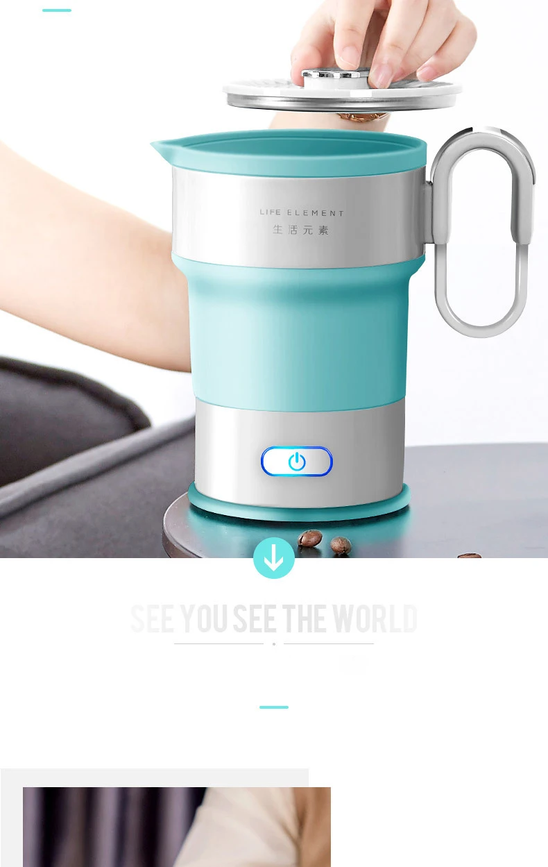 Bouilloire Électrique Pliable en Silicone Alimentaire avec Gobelet Pliable – غلاية مياه قابلة للطي ومحمولة
