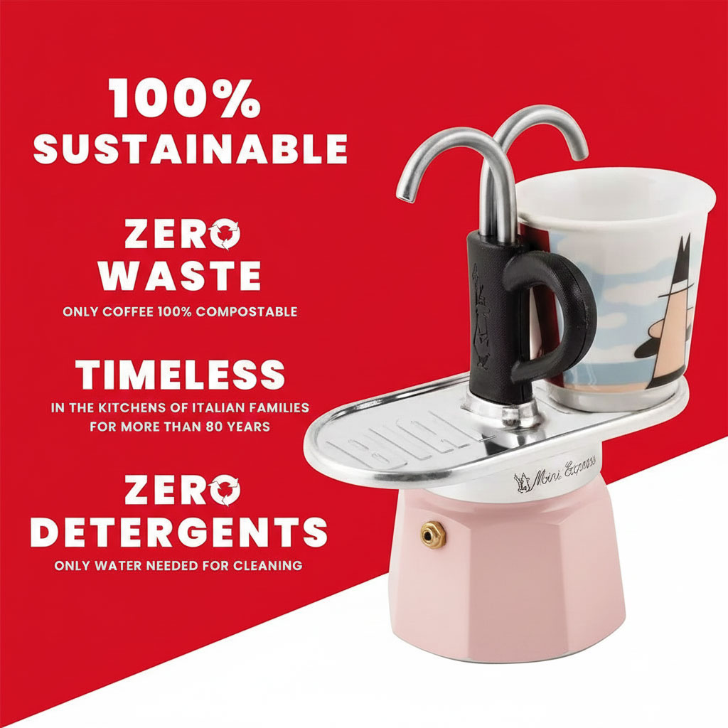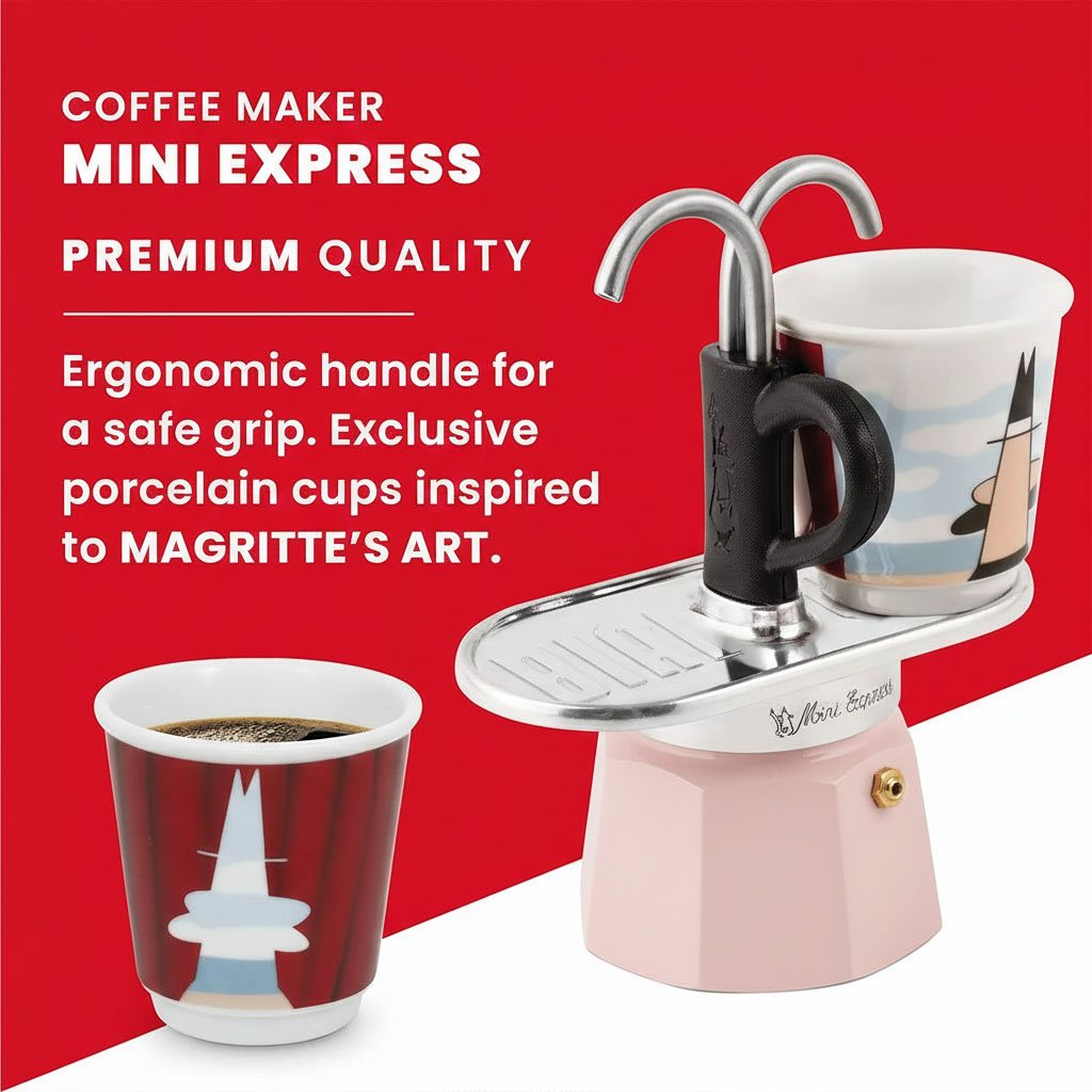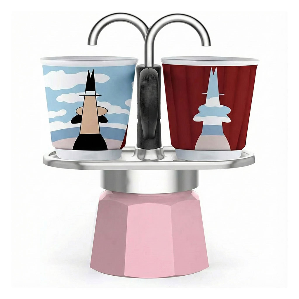 une cafetière italienne conçue pour préparer deux délicieuses tasses d’espresso simultanément. Inspirée par l’art de Magritte, cette cafetière ajoute une touche artistique à votre rituel café quotidien.