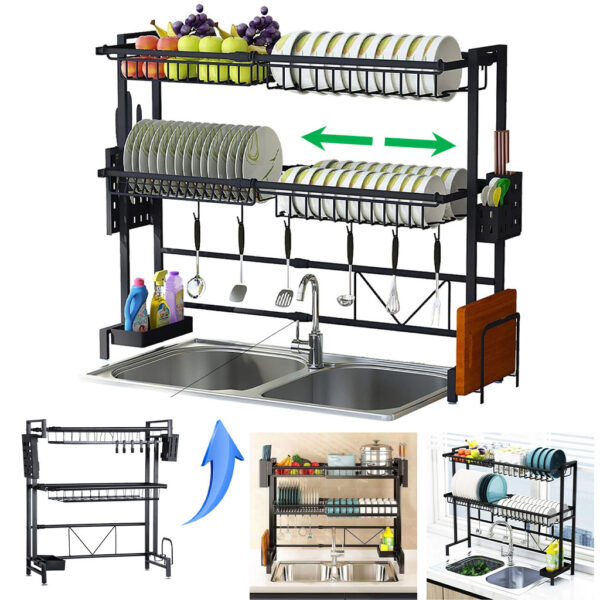 Egouttoir Vaisselle Cuisine à Longueur Extensible Deux Niveaux avec Grande capacité – منظم أواني قابل للتمدد