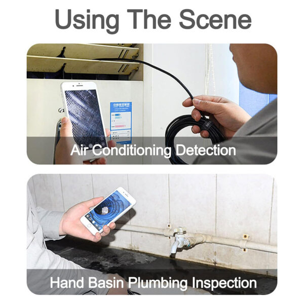La caméra d’inspection endoscope Wi-Fi peut être utilisée pour l’entretien des appareils électroménagers, l’inspection des tubes de bain et l’inspection des coins de canapé, des murs et des égouts.