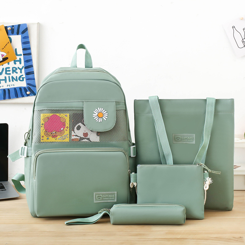 Ensemble de sacs d’école Kawai pour adolescents 4Pcs Guiyu V4 Vert – محفظة 4 قطع كاواي أخضر