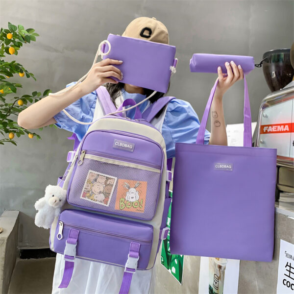 Ensemble de sacs d’école Kawai pour adolescents 4Pcs V3 CLBD Mauve – محفظة 4 قطع كاواي بنفسجي
