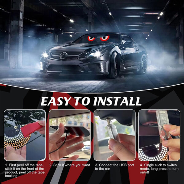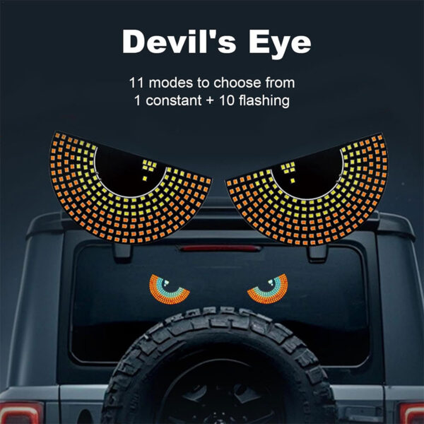 - Décoration de voiture Yeux de diable lumineux pour voitures : rehaussez l’apparence de votre voiture avec des yeux de démon dotés de différents modes d’affichage, de lumières LED lumineuses et de motifs captivants qui ne manqueront pas de faire tourner les têtes.