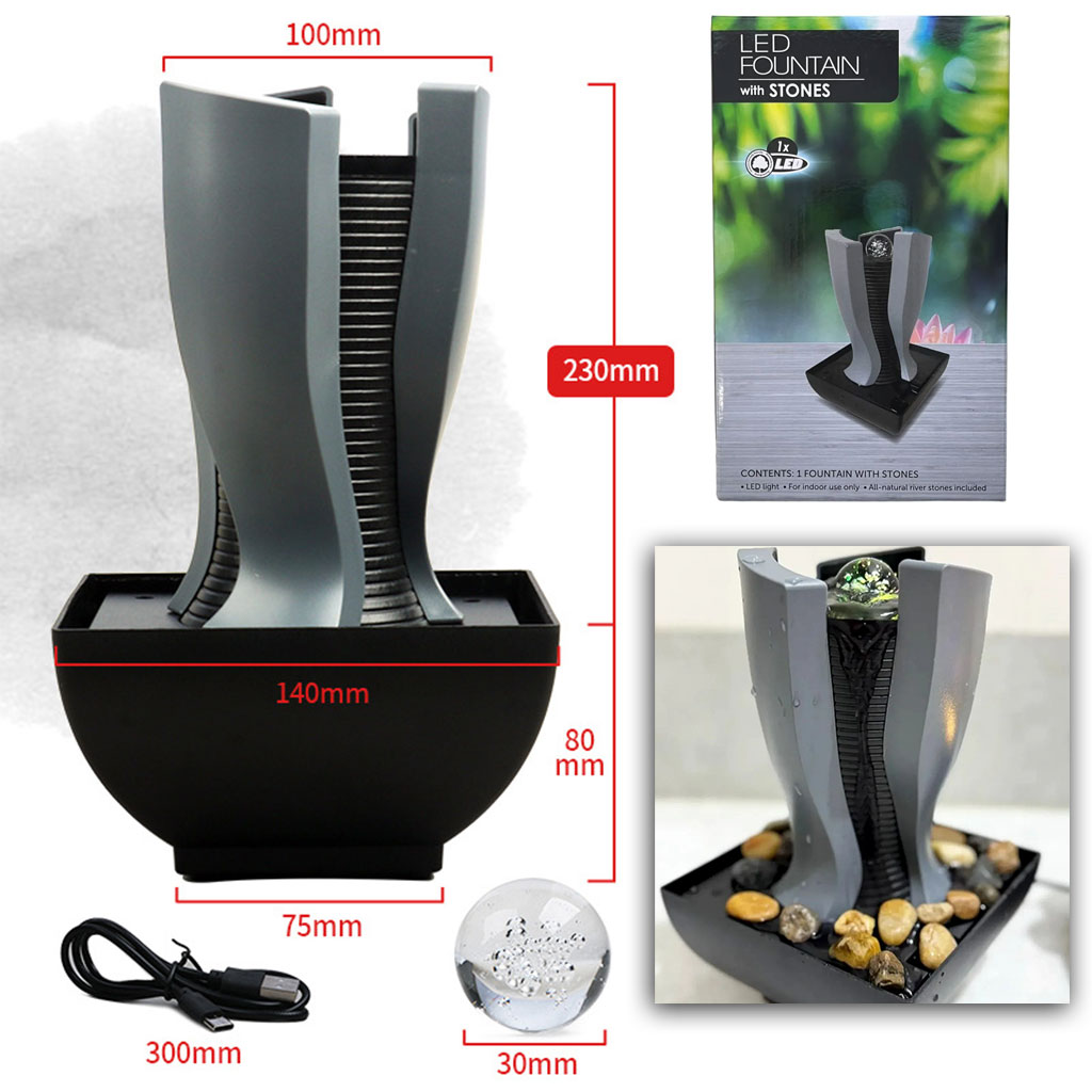 Cette fontaine est conçue pour offrir un confort visuel et auditif sans nécessiter d’entretien compliqué. Grâce à son rétroéclairage LED, le mouvement de l’eau et des pierres se détache, et vous pouvez les agencer à votre guise. Elle est idéale pour se détendre, apaiser son esprit ou créer une ambiance agréable pour travailler. Ses dimensions discrètes lui permettent de s’intégrer même dans les petits espaces et d’apporter une touche d’élégance à tout intérieur.