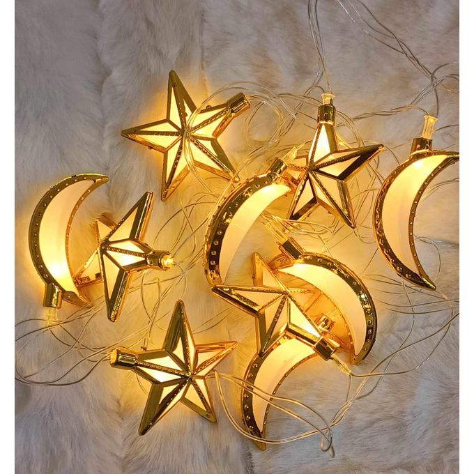 Guirlande Lumineuse Eid et Ramadan LED 10pcs – إضاءة رمضان على شكل قمر ونجمة