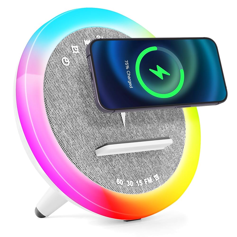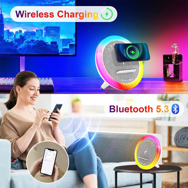 Haut-parleur et Lampe de Chevet avec Lumière d’ambiance RGB et Chargeur Induction 15W – مكبر صوت وشاحن لاسلكي مع إضاءة ملونة