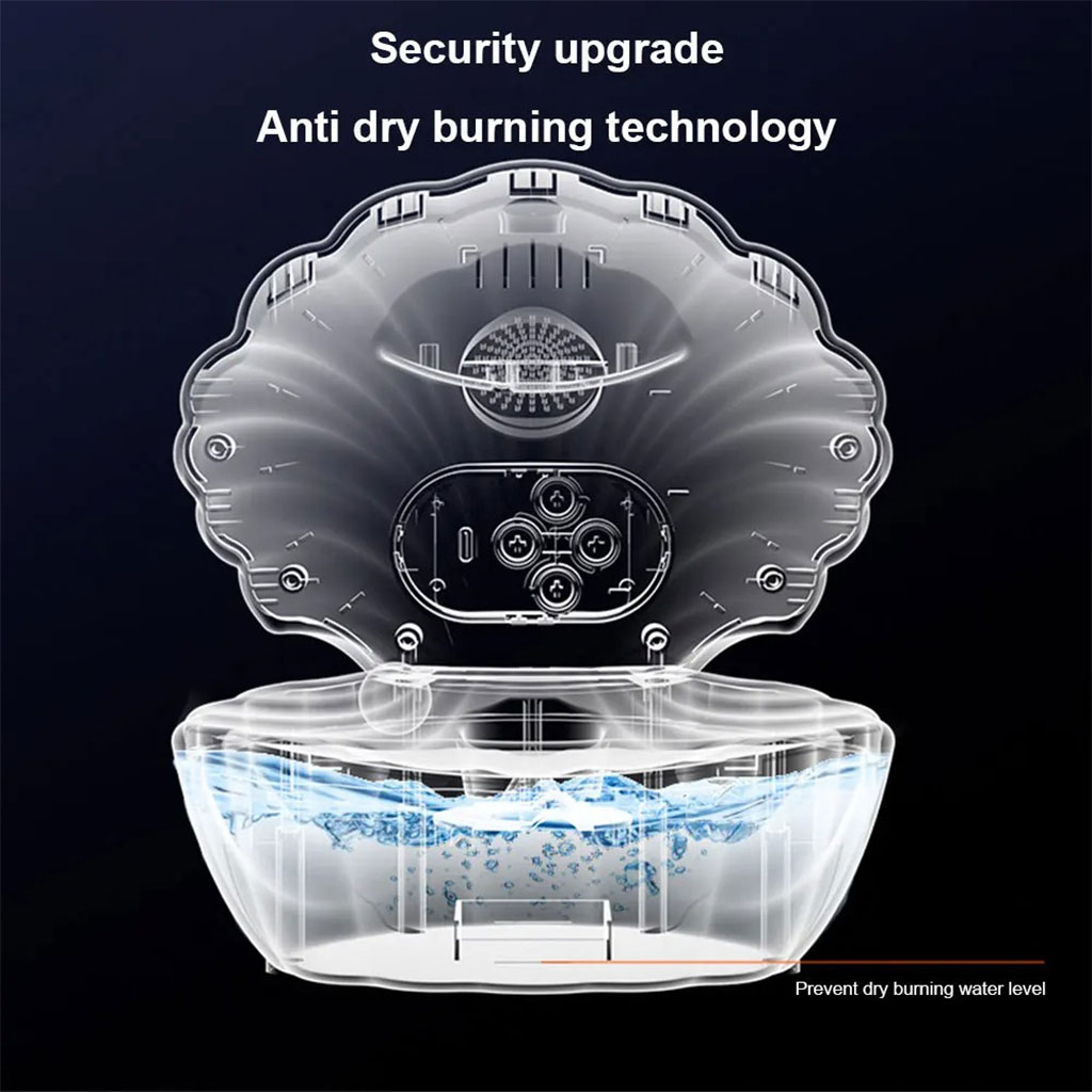Humidificateur d’air et Haut Parleur BT avec lumière d’ambiance antigravité 550ml – مكبر صوت ومعطر جو على شكل محار البحر