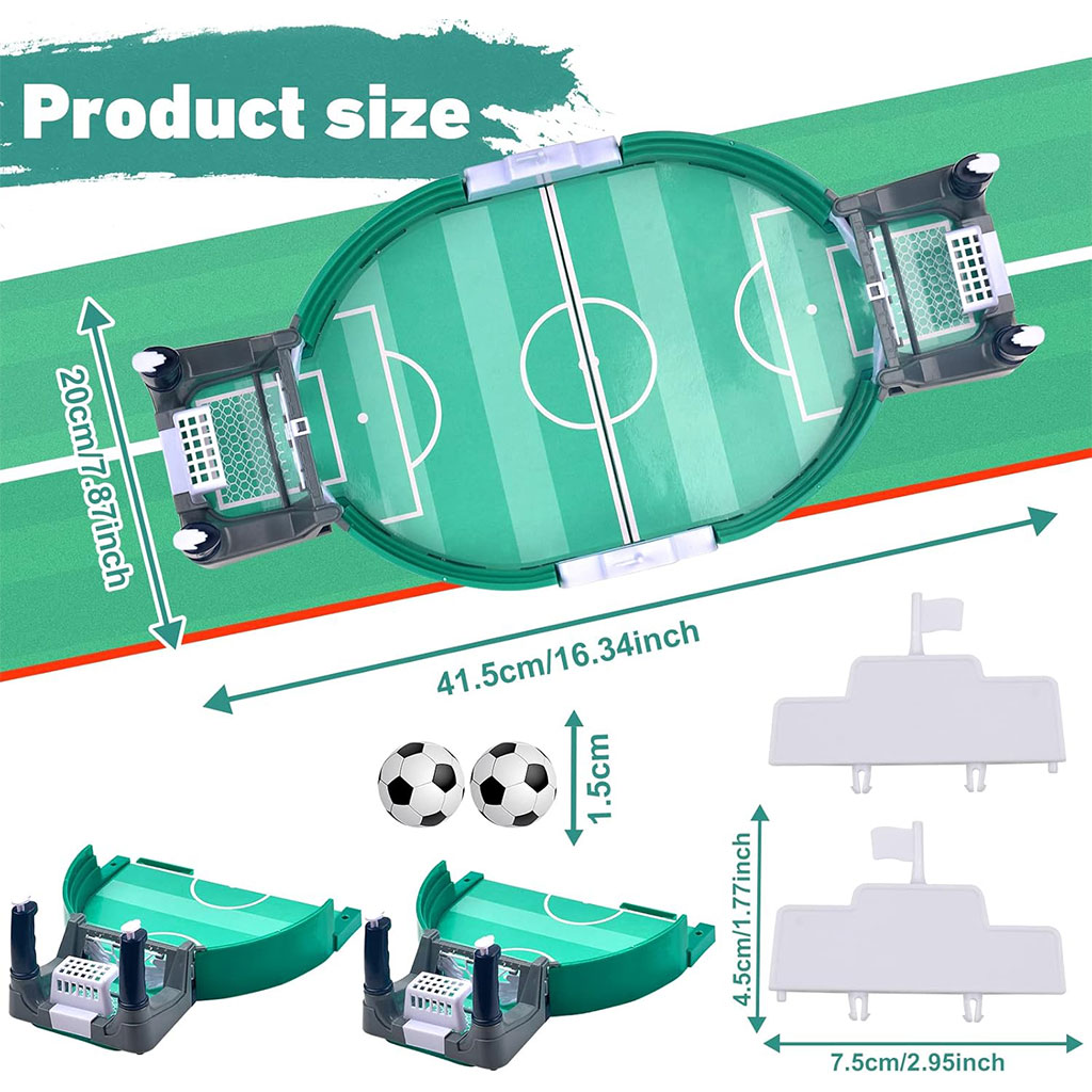 - Jeu de société sportif 1 ensemble contient 1 terrain de football, 2 balles de soccer, 4 s de contrôle, 2 filets de porte et 2 enclos utilisés pour protéger les terrains de football, il est également très facile à installer. Nous combinons le concept de football avec les jouets et profitons du plaisir du football sur la table.