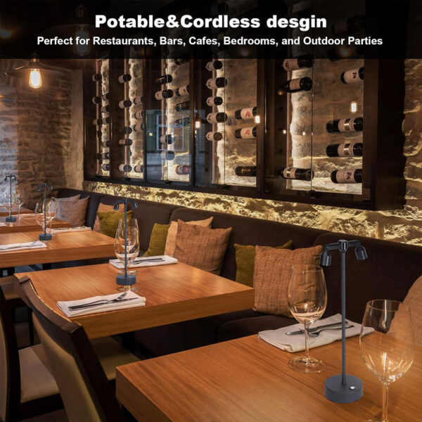 - Conception sans fil : grâce à sa conception sans fil, la lampe de bureau LED en métal peut être utilisée n’importe où, comme dans les salons, les chambres, les salles d’étude, les restaurants, les bars, les cafés, les chambres d’hôtel, les dortoirs ou même pour le camping en plein air.