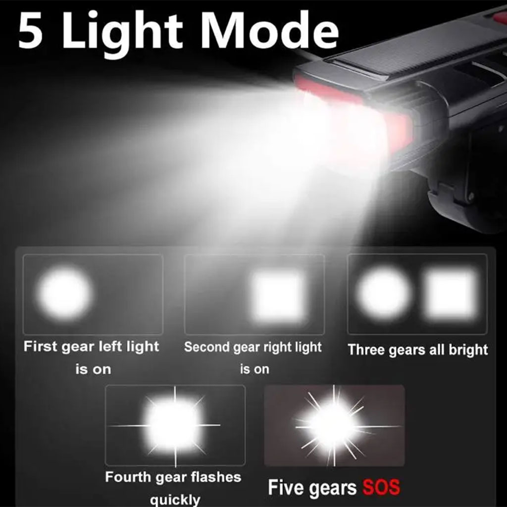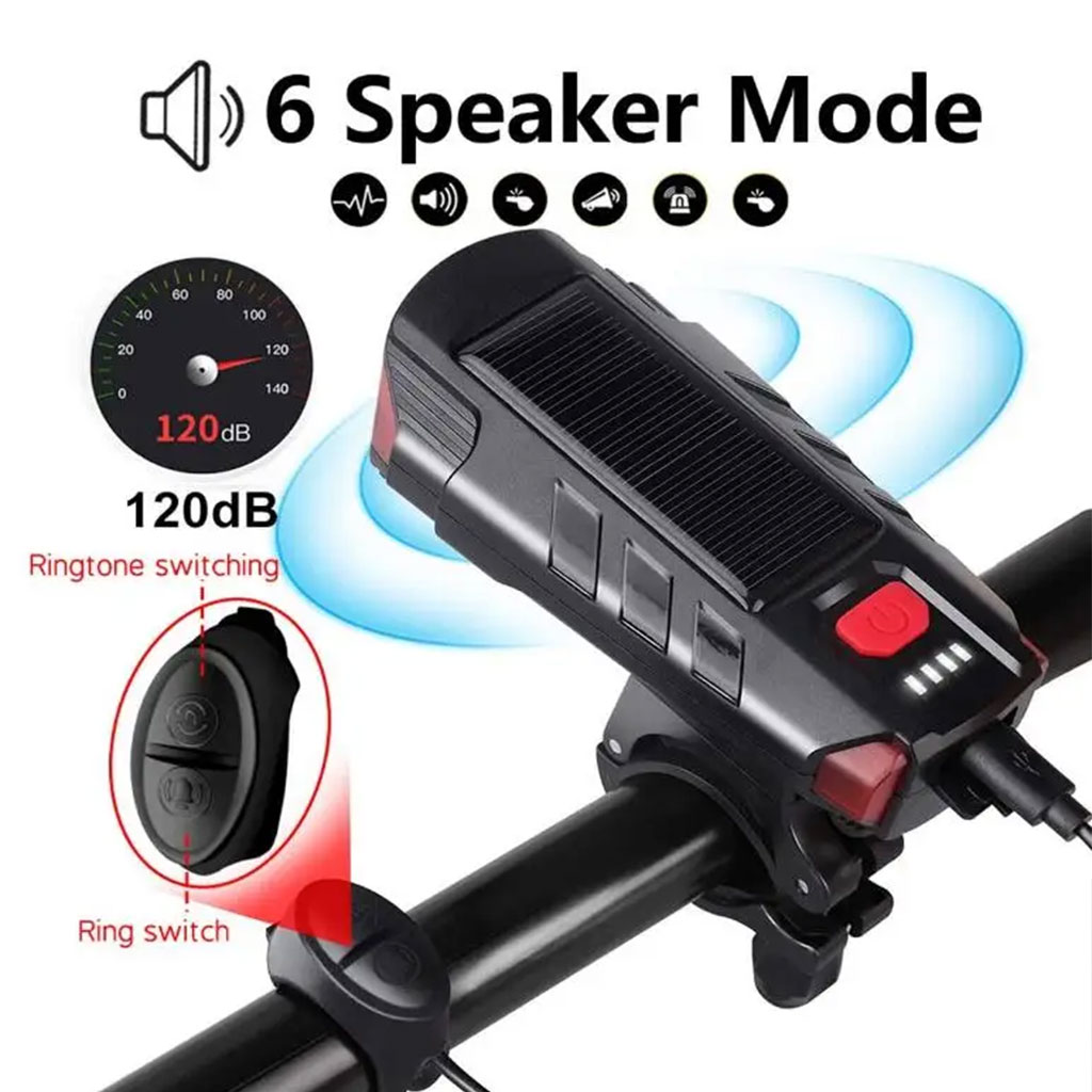Lampe d’éclairage solaire pour vélo et trottinette avec sonnette et alarme – مصباح دراجات يعمل بالطاقة الشمسية