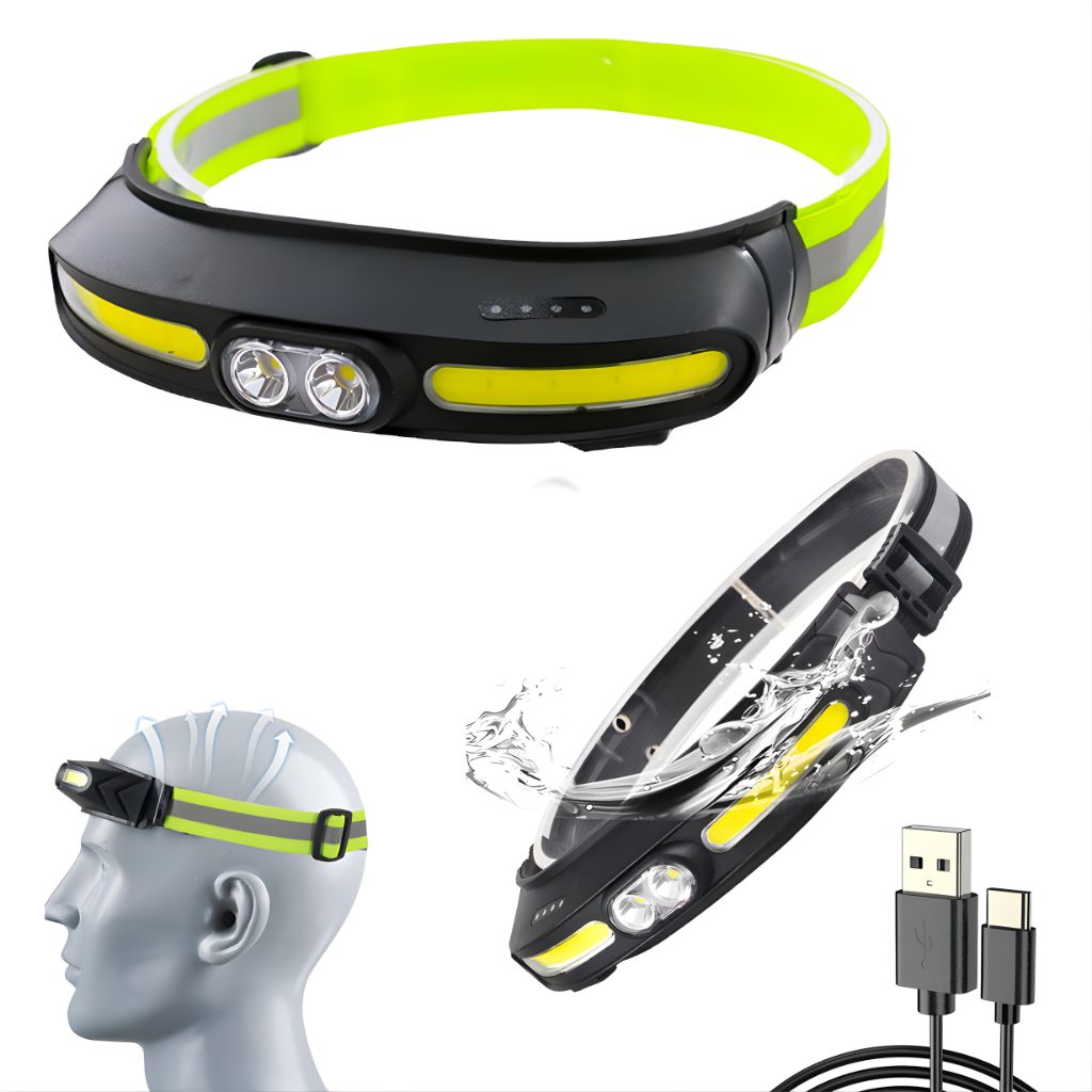 Lampe frontale transfrontalier étanche lumière forte COB double source de lumière TYPE-C