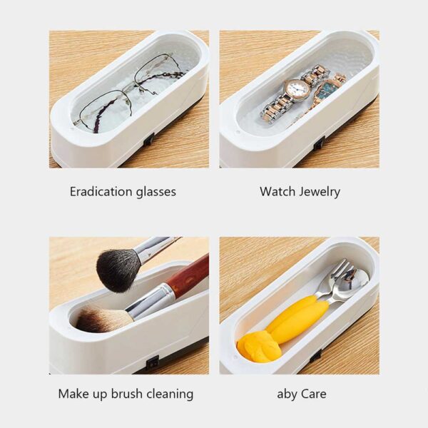 - Convient pour nettoyer les lunettes, les bijoux, les pinceaux de maquillage, les jouets, les rasoirs, les brosses à dents, les coupe-ongles, les peignes, etc.