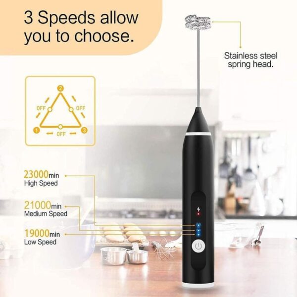Mousseur à Lait 3 Vitesses Électrique Rechargeable – جهاز صنع رغوة الحليب الكهربائي القابل لإعادة الشحن