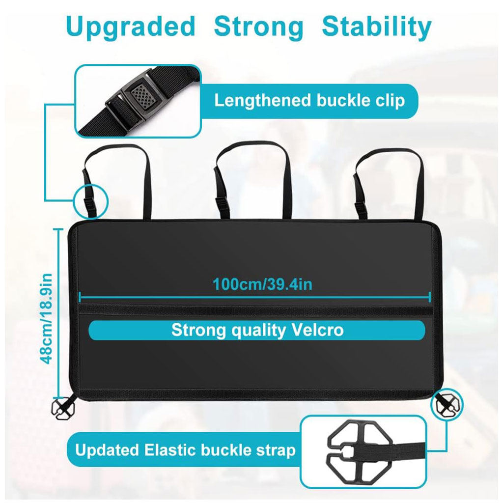 - 【Stabilité renforcée améliorée】 L’organisateur de coffre de voiture a une méthode de stabilité triplement fixe – Velcro solide d’origine et boucle de tête, et deux boucles élastiques mises à jour sur le fond ; il ne bougera pas ou ne flottera pas même si vous stockez des objets lourds ; Les deux boucles élastiques carrées mises à jour améliorent considérablement la stabilité pour éviter la situation où le Velcro n’est pas collant après une utilisation à long terme ; De plus, cette conception lui permet de bien correspondre au siège en cuir (généralement le Velcro ne peut pas bien fixer le siège en cuir).