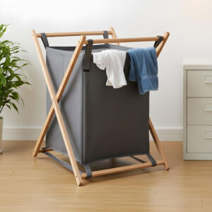 Paniers à linge pliables avec support en bois