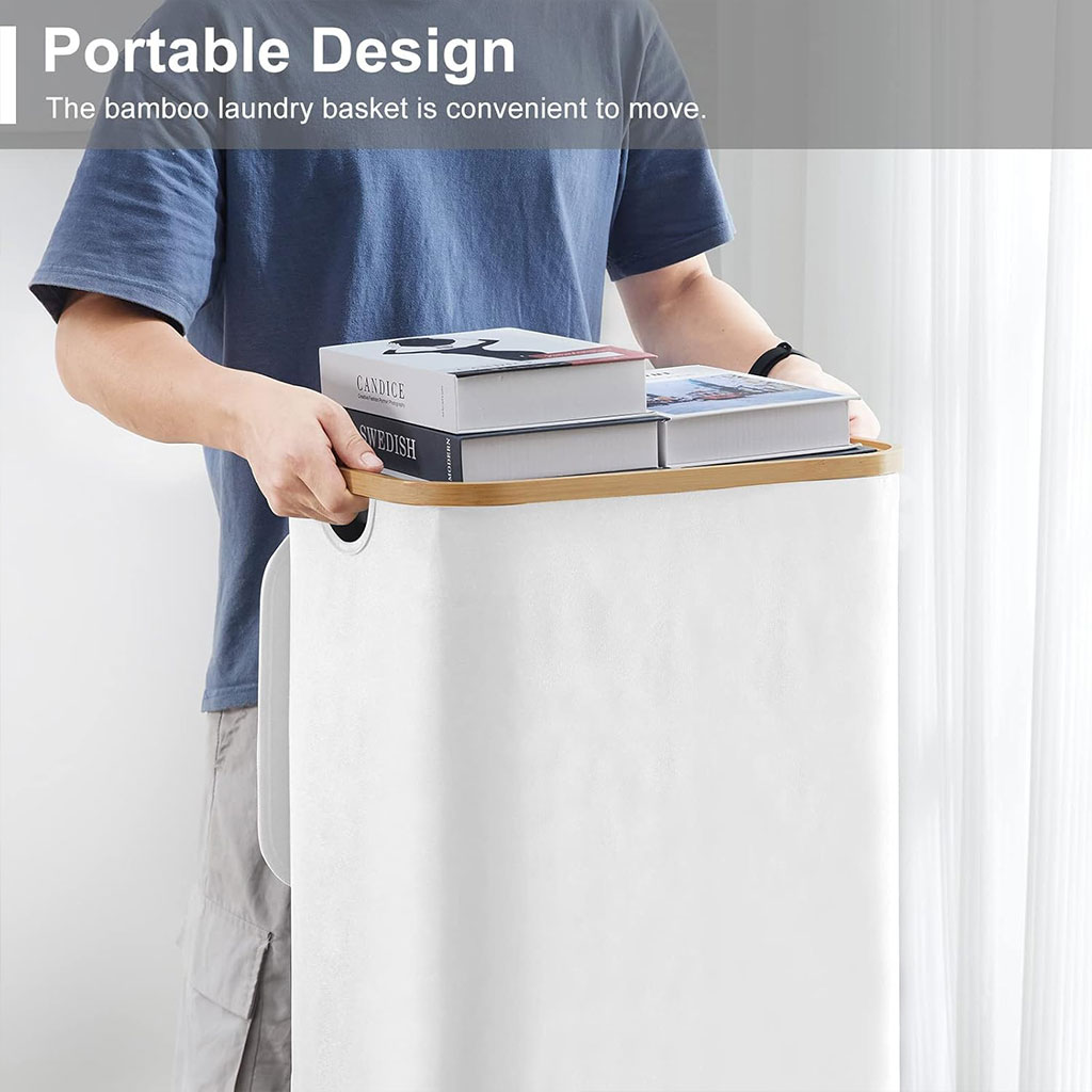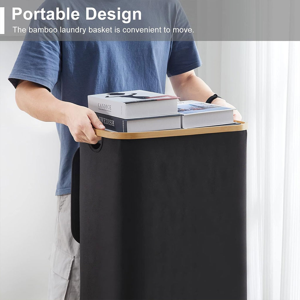 - Simplifiez les tâches de lavage : la poignée en bambou lisse assure une prise en main confortable sans causer d’inconfort à vos mains. Le couvercle du panier aide à contenir les odeurs et à maintenir un environnement bien rangé. Avec un grand espace de rangement, ce panier à linge aide à organiser efficacement les vêtements, gardant votre maison ou votre dortoir propre et bien rangé.