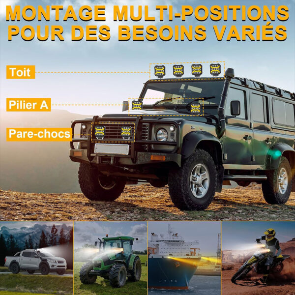 Phare LED Anti-brouillard 1PCS avec 5 Modes d’éclairage 12V-24V IP68 étanche – مصباح عالي السطوع للسيارات والدراجات النارية