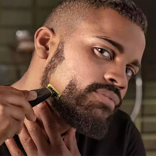 - OneBlade suit les contours du visage pour que vous puissiez couper et raser toutes les zones du visage avec confort et facilité. Utilisez la lame double face pour profiler les bords et créer des lignes nettes en déplaçant la lame dans n’importe quelle direction.