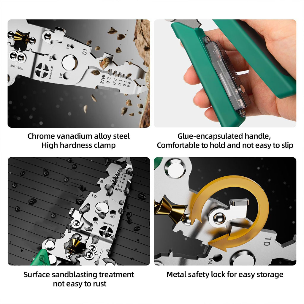 Fabriqué en acier inoxydable robuste, cet outil dispose d’un design antidérapant assurant une manipulation sûre et un dénudage précis sans endommager les conducteurs.