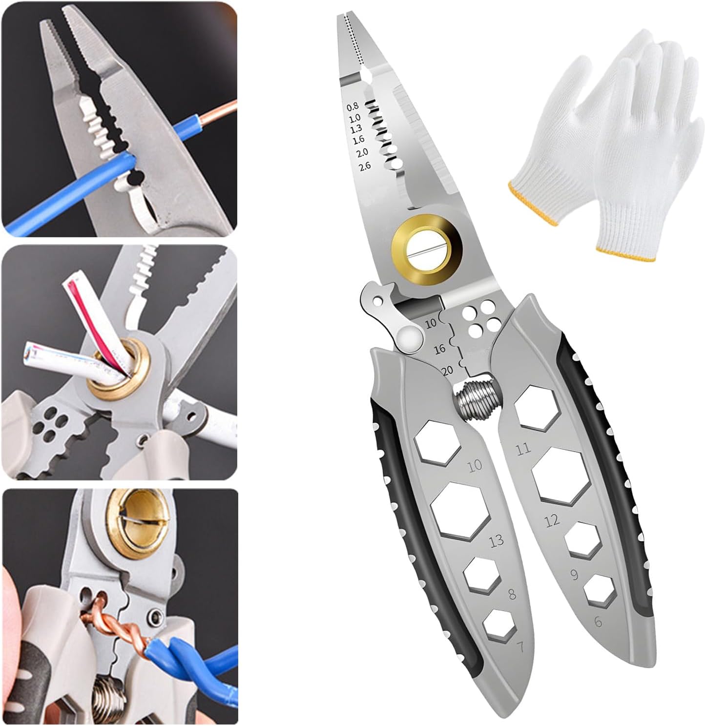 - Pince a denuder electricien de haute qualité】Forgée en acier au chrome vanadium, dure, antirouille, résistante à l’usure et durable. Les trous de vis sur la poignée permettent d’utiliser facilement des vis et des écrous de 6 mm à 13 mm.
