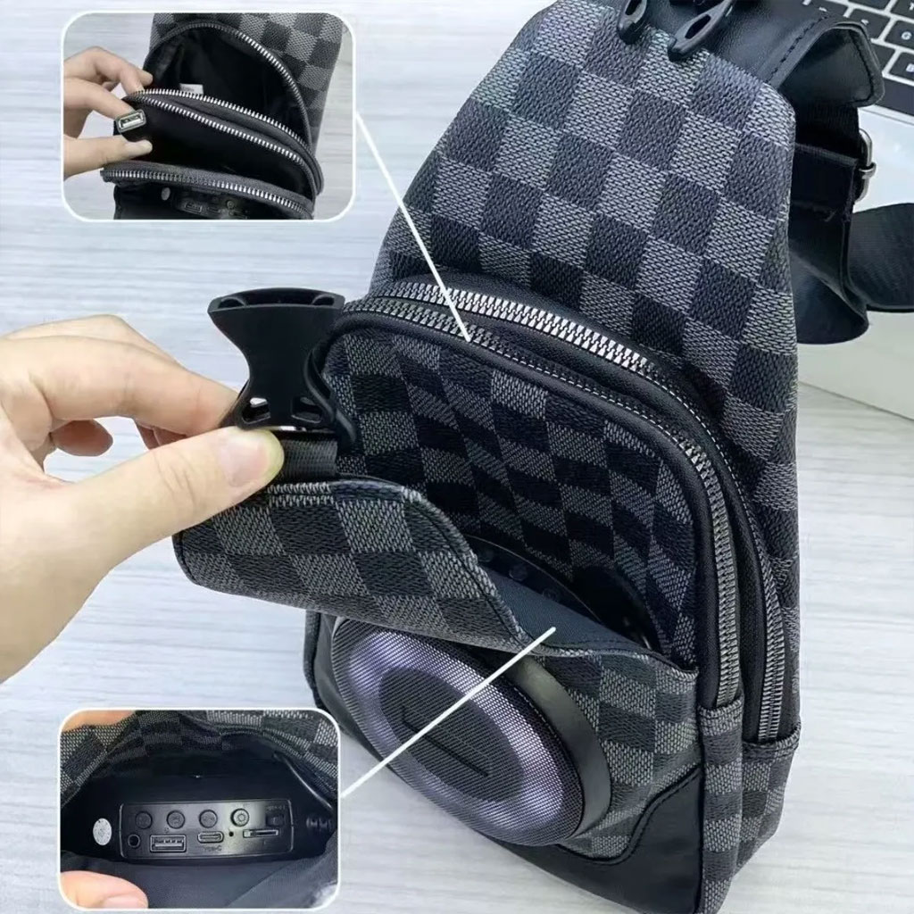 Sac à Bandoulière avec Haut Parleur Bluetooth Rechargeable RGB CH-M818 – حقيبة رجالية مع مكبر صوت بلوتوث مدمج
