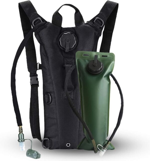 - 2: Vessie d’hydratation de 3L: sans BPA, sans goût et sans odeur. Tube sip durable, sans pli et valve de morsure rembourrée, mordant doucement la valve pour ouvrir l’écoulement de l’eau; Grande ouverture 2 pour glaçons et nettoyage facile