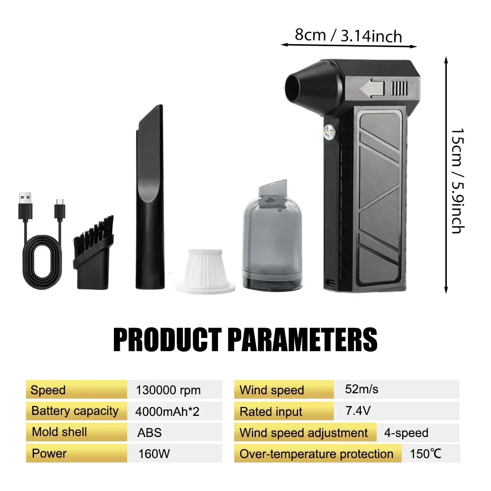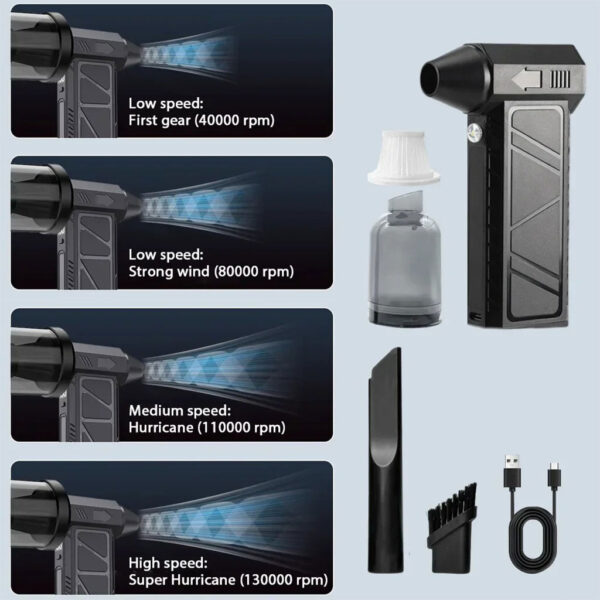 Souffleur et Aspirateur Portable avec Ventilateur Turbo à Jet 2en1 4 Vitesses – جهاز نسف الهواء ومكنسة كهربائية محمول