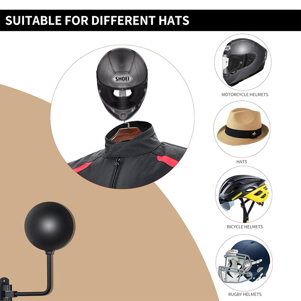 Support Mural pour Casque avec 2 Crochets pour Manteaux – حامل خوذة يُثبّت على الحائط مزود بخطافين للمعاطف