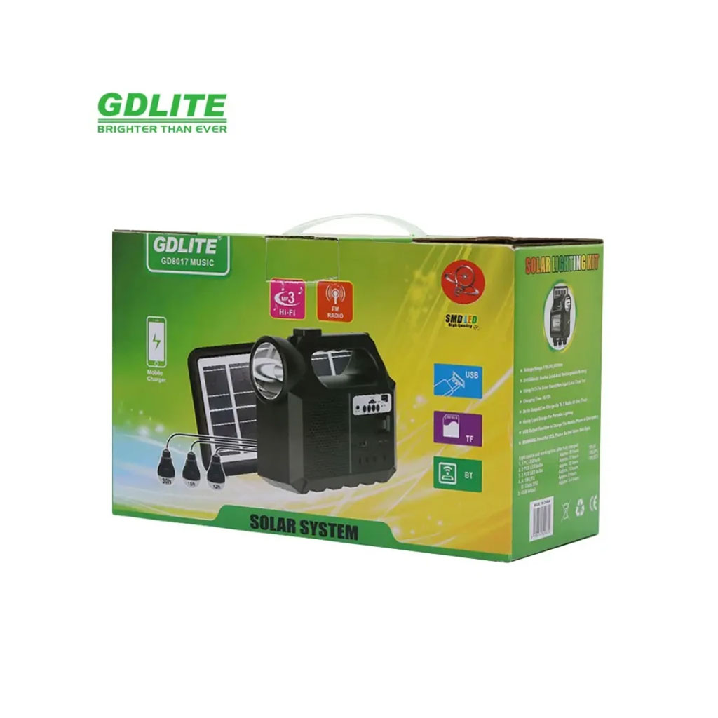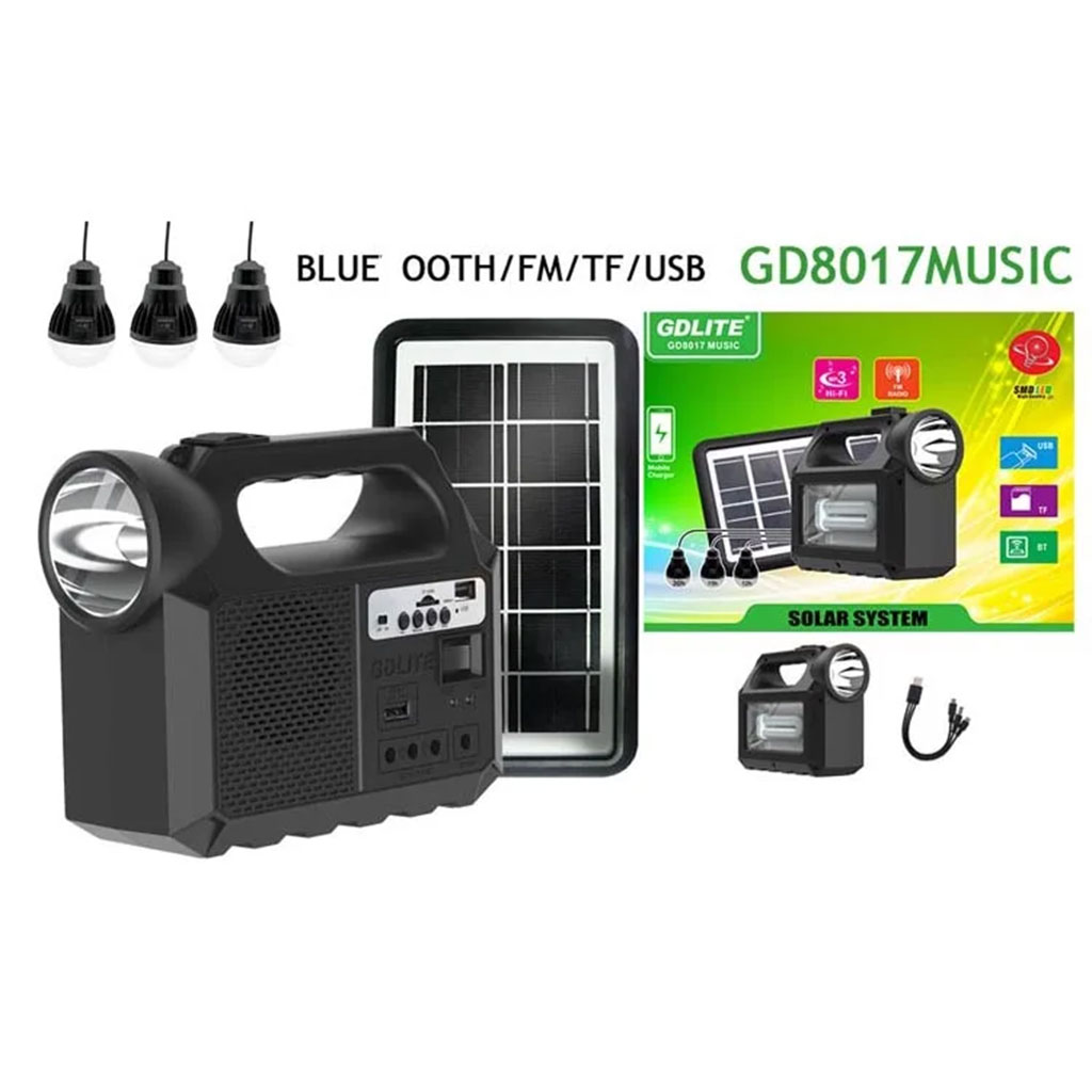 Système d’Éclairage Solaire avec Haut Parleur Bluetooth GDLITE GD8017 – طقم إنارة بالطاقة الشمسية مع مكبر صوت بلوتوث
