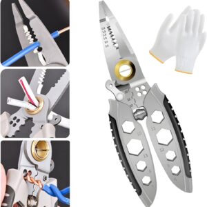 - Améliorer l’efficacité: Une pince à dénuder pratique multifonction pour une large gamme de travaux électriques tels que dénuder, couper, sertir, enrouler, desserrer, tordre et serrer des fils. Il n’est pas nécessaire de changer fréquemment de pince lors de l’utilisation, ce qui améliore l’efficacité du travail.