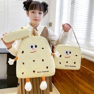 Ensemble de sacs d’école Kawai pour adolescents 3Pcs Language Jaune – محفظة 3 قطع كاواي أصفر